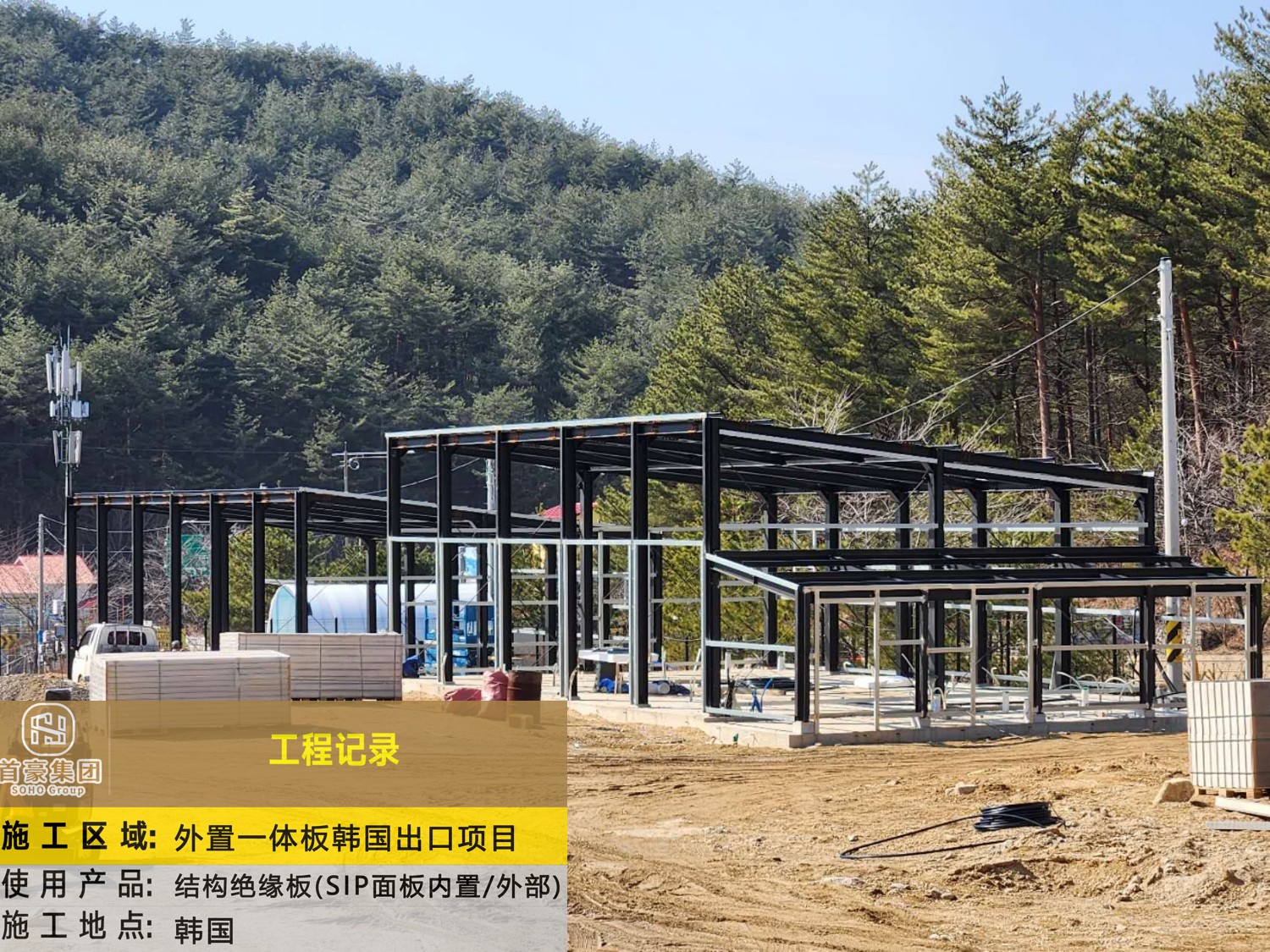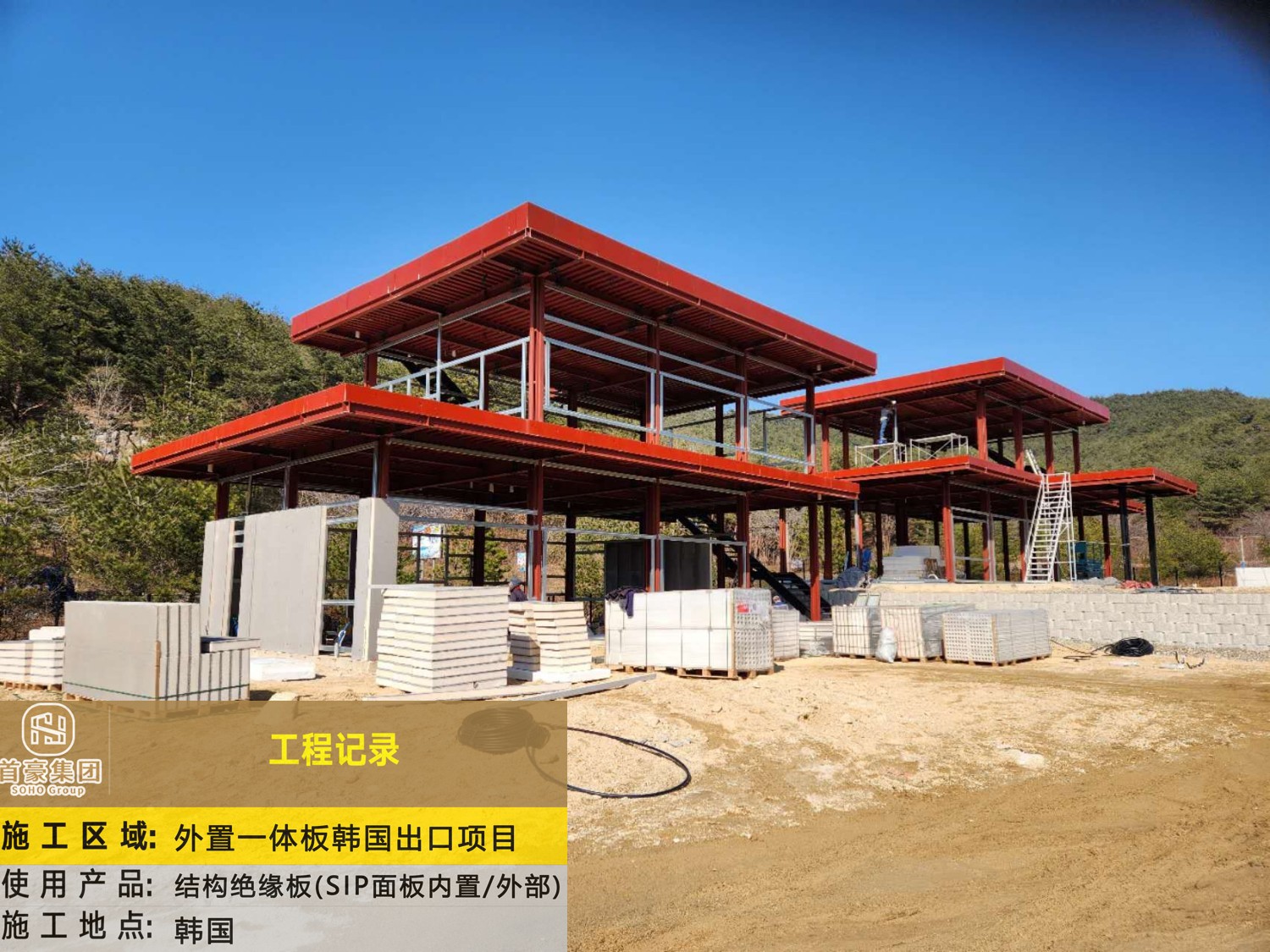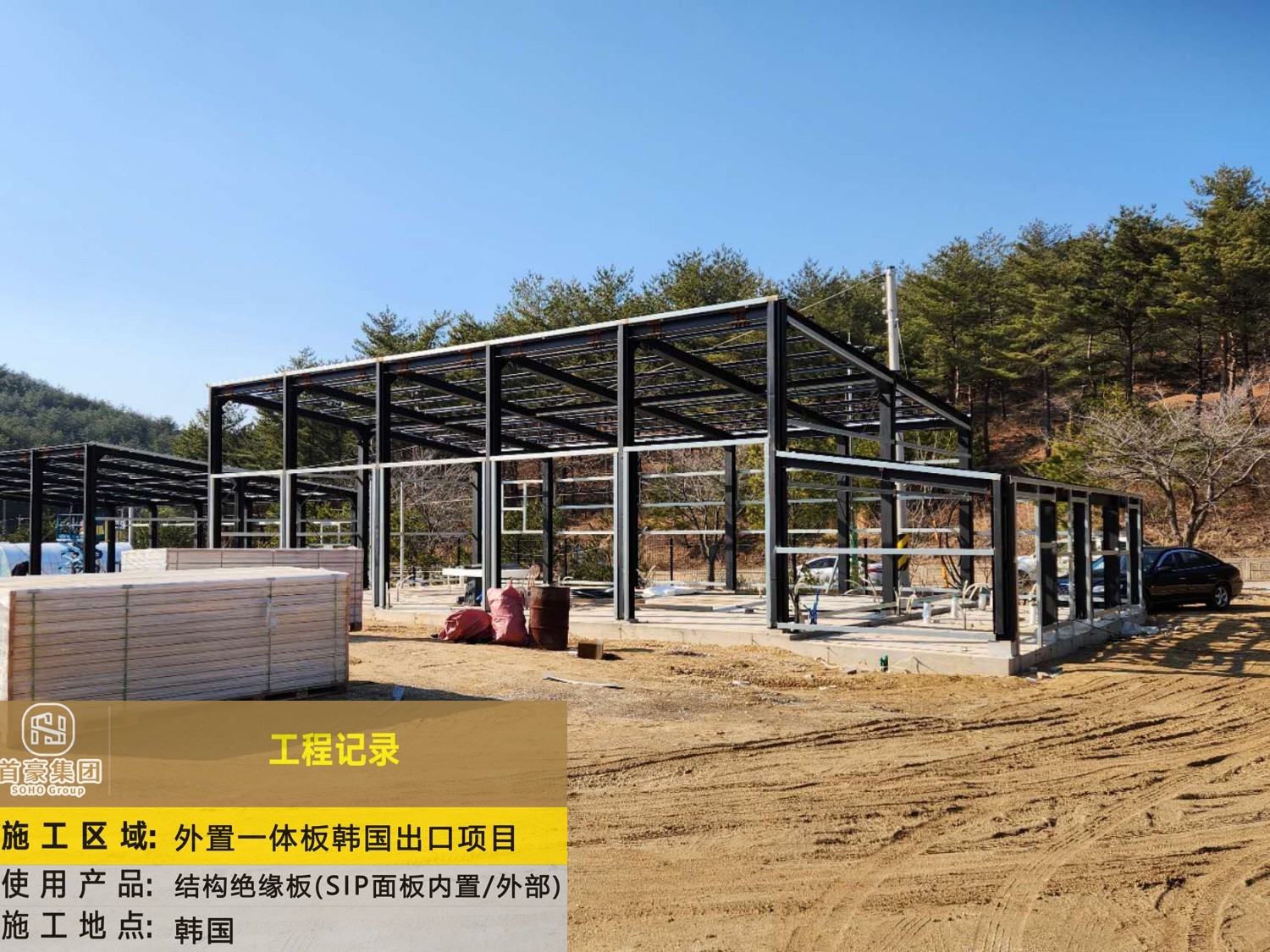 施 工 区 域:外置一体板韩国出口项目 使 用 产 品:结构绝缘板(SIP面板内置/外部) 施 工 地 点:韩国