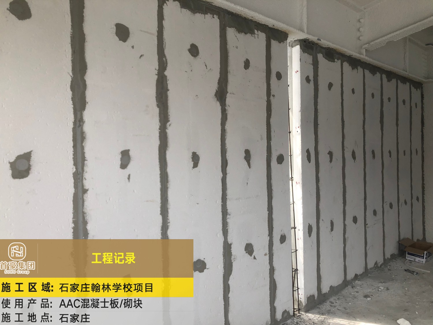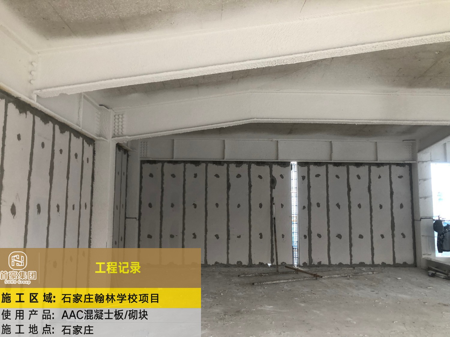 施 工 区 域:石家庄翰林学校项目 使 用 产 品:AAC混凝士板/砌块 施 工 地 点:石家庄