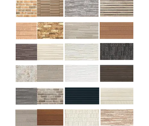 每种款式的外墙板还配有不同的标准颜色,颜色逼真。不同款式的标准颜色可以任意搭配。